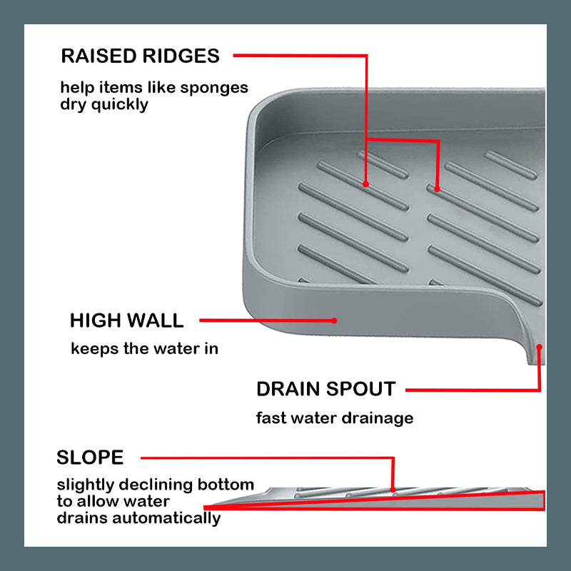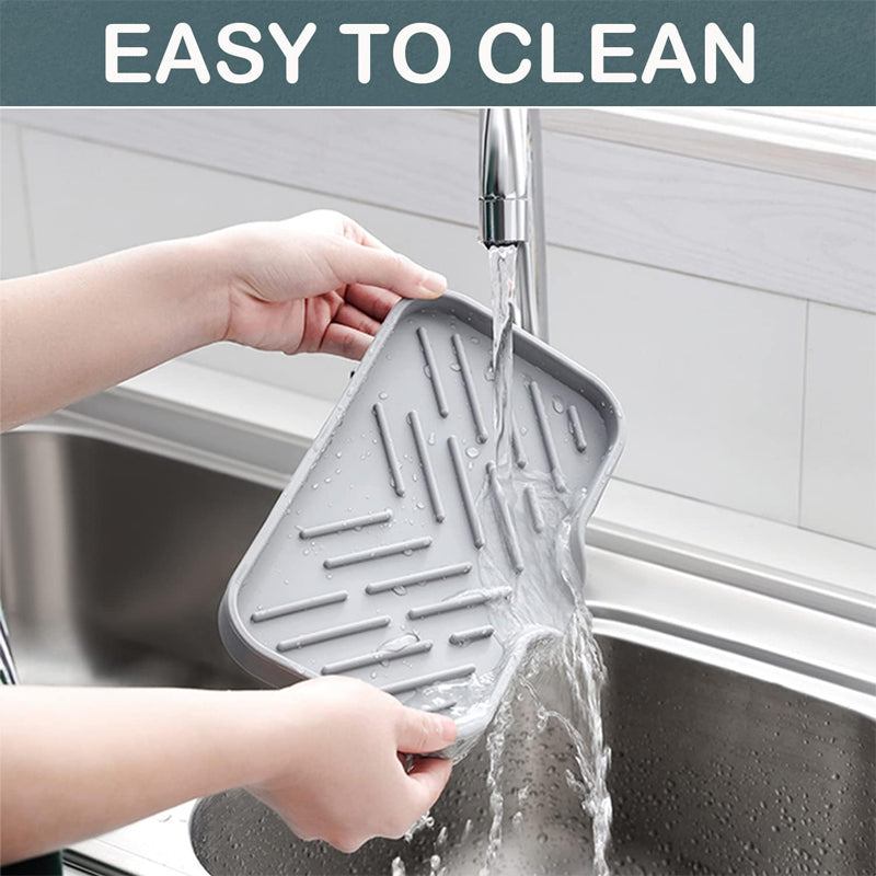 Diese Silikon-Anti-Spritz-Matte besteht aus hochwertigem Silikonmaterial und verfügt über ein einzigartiges Rillen-Design, das Wasser schnell ableitet und Spritzer effektiv verhindert, sodass der Bereich um Ihr Spülbecken stets trocken und sauber bleibt.